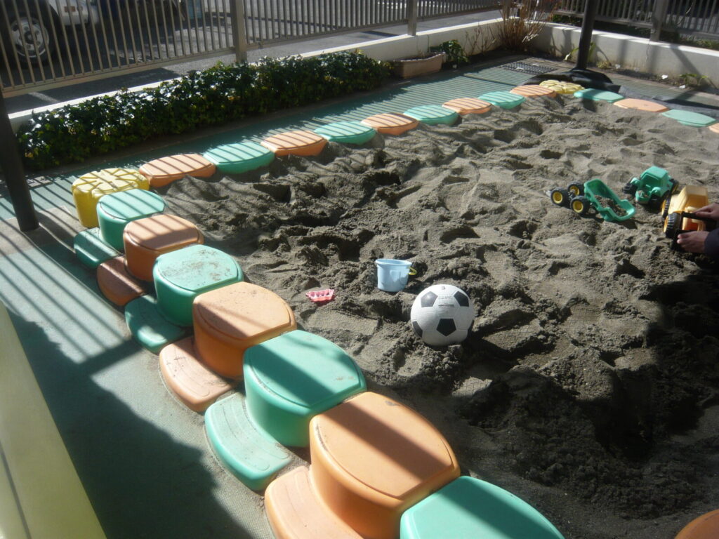 室内遊びに飽きたらお庭の遊具や砂場で気分転換もできます。